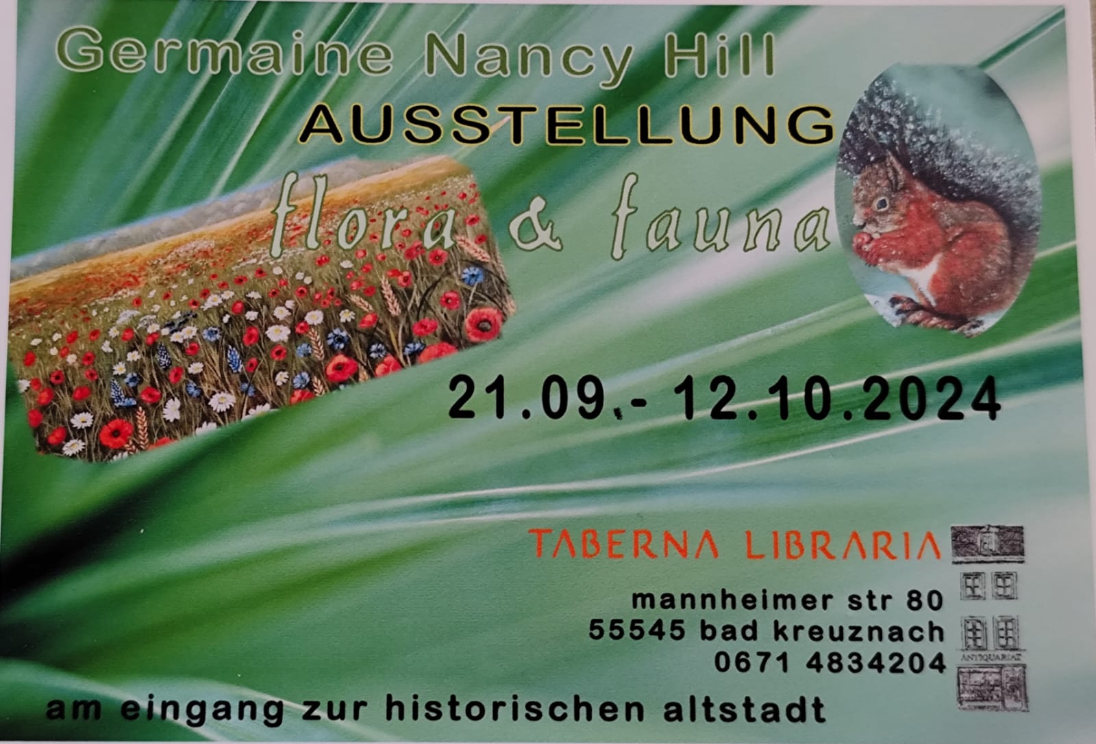 - 21.09. – 12.10.2024 Flora & Fauna, Taberna Libraria, Bad Kreuznach
