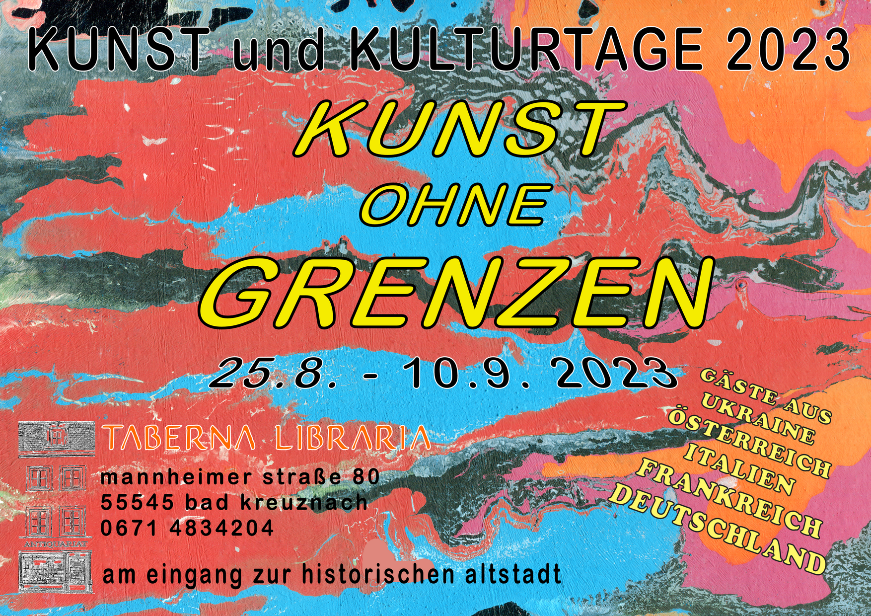 - 25.08. – 10.09.2023 Kunst ohne Grenzen, Taberna Libraria, Bad Kreuznach